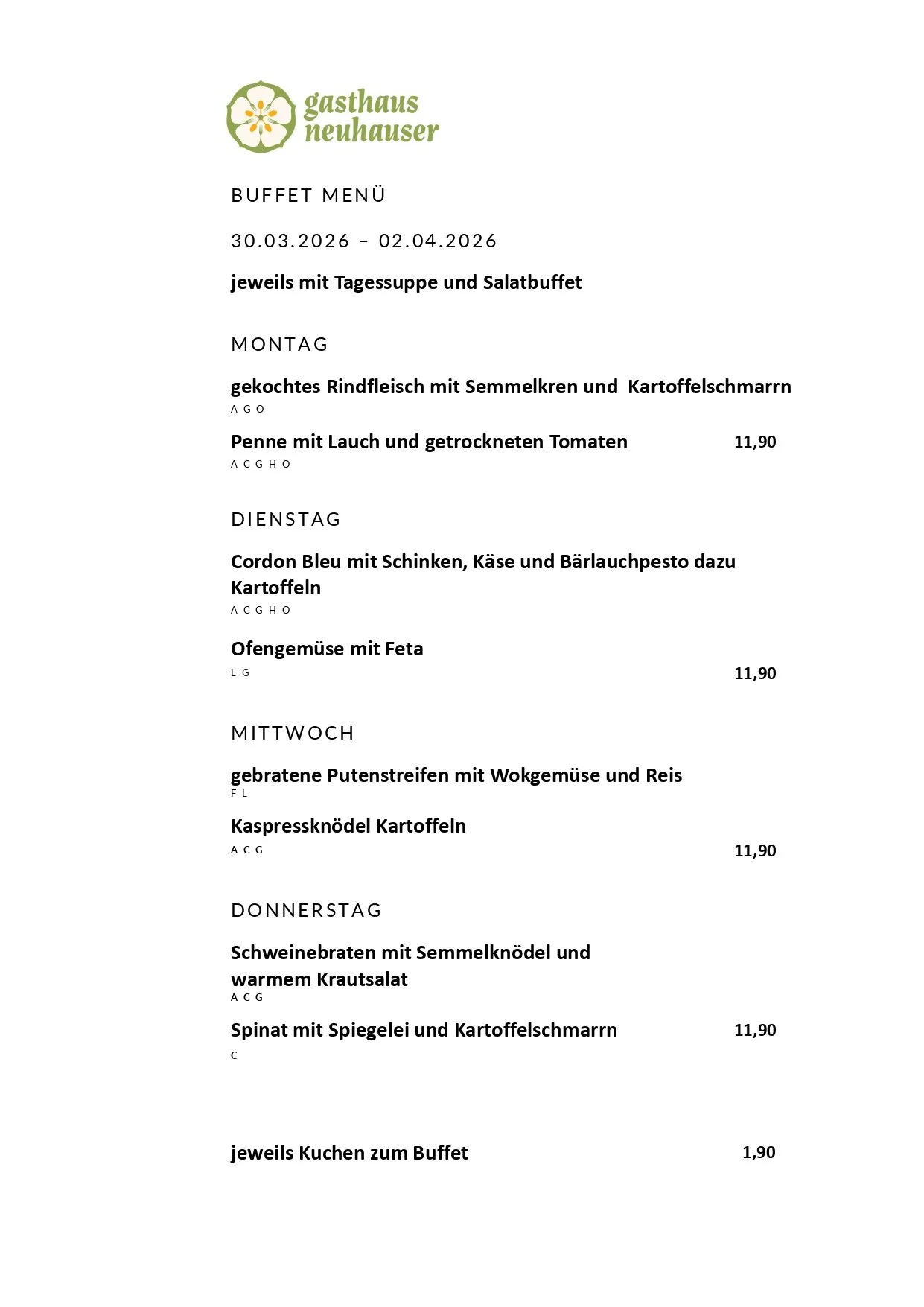 Von Montag bis Donnerstag MITTAGSBUFFET!